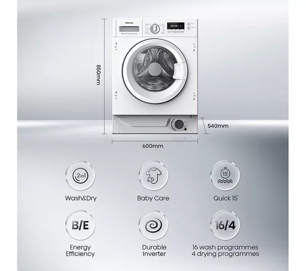 Hisense WD3M841BWI Integrated Washer Dryer, 8kg/6kg, 1400 Spin, White, B Rated