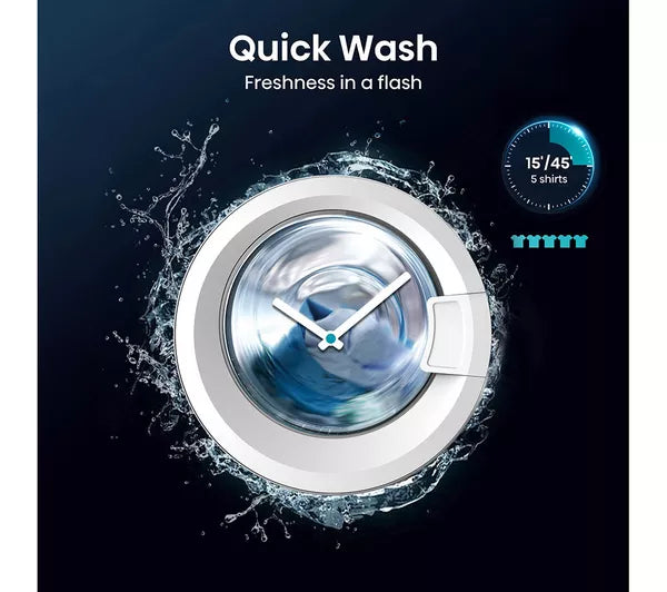 Make your laundry days look better with this Hisense washer dryer. Its quick wash program can blitz 1 kg of load in just 15 minutes. It's all about efficiency, thanks to its inverter motor that's super quiet yet fast at its job. And you'll be spoilt for choice with its 15 wash and 5 drying programs so you can choose the best one for your clothes.