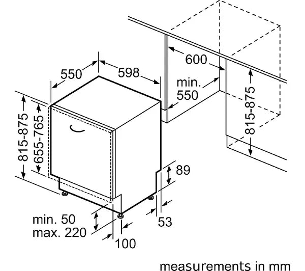 Recess dimensions | 815 - 875 x 600 - 608 x 550 mm (H x W x D) |