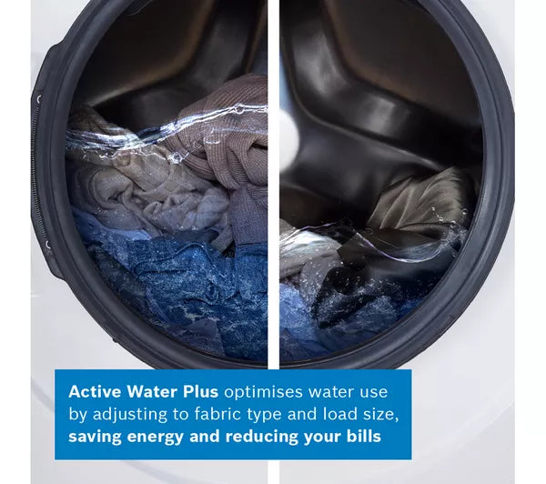 Want to spend less time getting a perfect wash? This Bosch Series 6 washing machine has a SpeedPerfect option that cuts washing times by up to 65%. Better still, it can can be used with most programs. If you're running late to office, the Super Quick feature will wash your clothes in as little as 15 minutes so your weekday mornings aren't as rushed. What's more, if you ever miss a sock or scarf while you're sorting the load, use the Reload function to add it and the wash will continue from where it left off.